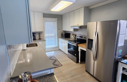 There is a Pack n Play as well as a booster seat with tray for the little ones to eat on. Kitchen (Fully Equipped): Toaster oven, Microwave, Stainless dishwasher, Disposal sink, Blender, Stainless conventional oven, Stainless Fridge w/ Ice maker & filtered water, Keurig coffee machine, Ninja coffee maker, French press, & everything a coffee lover needs. Stainless vent hood, Chopping block, Electric wine bottle opener, Electric can opener, Tea kettle, Mixing bowls, Cookie sheets, Electric griddle, & More. Appliances & Electronics: High Efficiency Washer and dryer within a spacious laundry room. Flat screen smart lcd Tv in living room, Master, & Guest Bedrooms. Upgraded cable tv package. Free Wifi, Wifi Radio, interior bluetooth speaker in guest bathroom. Alexa in the living room. High Speed Internet streams movies or games. Smart dvd player w/