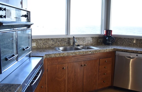 This beautiful home is located on a bluff overlooking Lighthouse Beach. It offers a 180-degree vista of the lighthouse, beach and Coos Bay jetty. The 2000 square foot house has private beach access. Each room offers an ocean view.