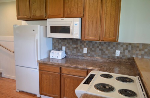 The kitchen is perfect for cooking with new appliances and is fully equipped. There is also a fire pit for roasting marshmallows and an outdoor grill.