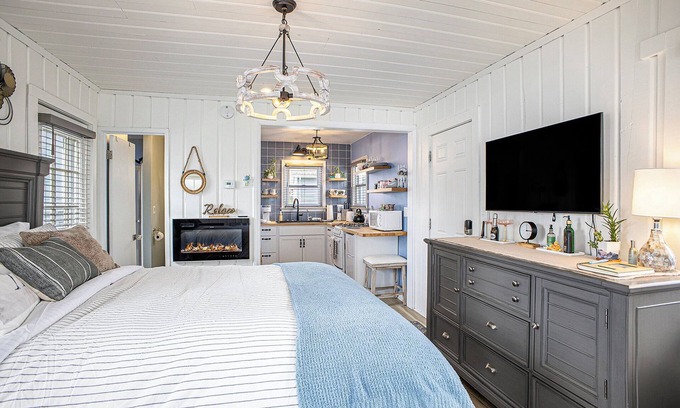 Perched atop the water as you look out from the Boathouse, this tiny home is 425 ft and has a cozy cottage feel with high-end amenities throughout! A perfect place for a romantic getaway or relaxing break from everyday life.