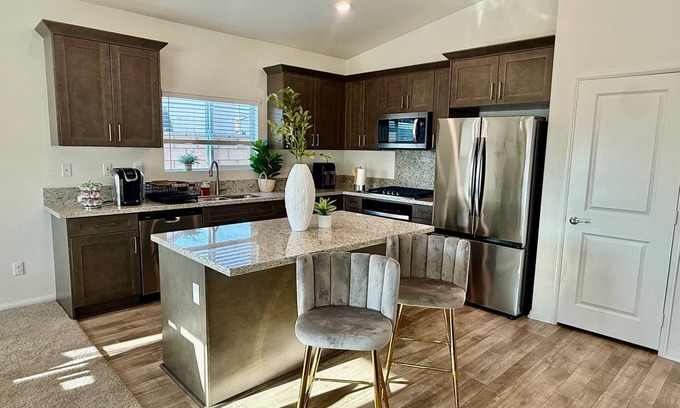 Your Moreno Valley adventure begins at this 4-bedroom house. Each bedroom features a cozy queen bed, perfect for a good night's sleep. With amenities like heating, AC, WiFi, and a washing machine, guests can relax and unwind in this welcoming space. The 3 bathrooms ensure everyone has their own space to freshen up. Our place is equipped for both long or short stays to make your holiday one to remember.