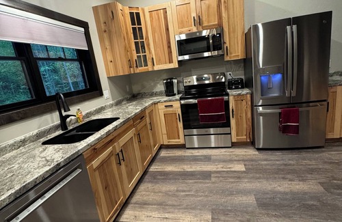 Brand new construction! Our cabin its the perfect place if you are looking for a peaceful and relaxing vacation! Walking distance to The Big Red Barn ! .. private space for parking , perfect for cook outs !