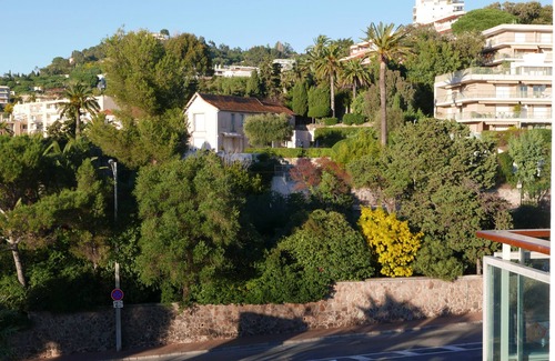 The living room gives access to both the terrace and the balcony. From the bedroom there is also access to the balcony. The terrace offers a magnificent view of the sea, the Esterel and the Garden of Morès below. The balcony offers a beautiful view of the Croix-des-Gardes.