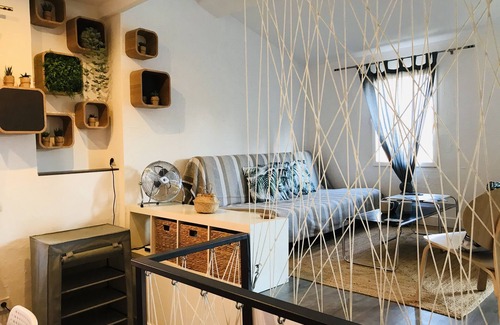 An island of tranquility in the city center, in the heart of shops, restaurants, bars in Tapas, close to public transport ( bus, shuttles and train station)