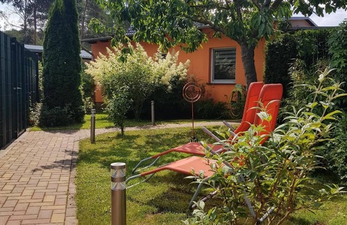 In the outdoor area of our bungalow you will find a beautiful conservatory with an adjoining terrace that invites you to relax and a swing with table and chairs as well as a barbecue for a nice barbecue evening. The garden offers plenty of space for people and pets to relax and enjoy the peaceful, natural surroundings. The proximity to the natural beach, which is about a 15-minute walk away, also offers ideal conditions for days full of sun and relaxation by the water.
