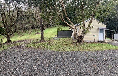 Relax in your own private open plan cabin with full kitchen, private bathroom/laundry, full kitchen with 4 hotplate stove, lounge/dining area, undercover parking private outdoor patio'