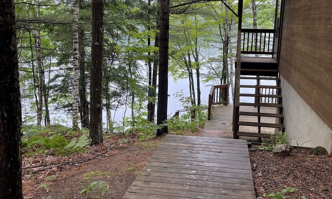 The sunroom and lower deck offer beautiful views of this lake. Keep an eye out for the loon family and bald eagles.