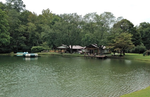 Located only 20 minutes from downtown Nashville on Setters Lake. It has a private 2-acre lake for swimming, kayaking, and paddle boating along with a dock and beach area. The lake house comes with an open pavilion area with an outdoor kitchen, living area, ping pong table, hot tub, and outdoor shower.