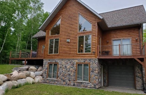 This year-round cabin was constructed in 2018. Beautiful setting on gorgeous Turtle Lake! Great fishing, swimming, boating! Also a winter wonderland for snowmobiling, ice fishing, etc. Property has 4 spacious bedrooms. Sleeps up to 10-12 comfortably. Cabin has main floor with lofted ceiling. All pine hardwood throughout. Bedrooms and living room are carpeted. Upper floor has two bedrooms (one with 4 twin beds), the other with one double bed and two twin beds. These upper bedrooms share a bathroom with shower/tub. Master bedroom on main floor has its own bathroom and shower. Newly finished lower level (walkout) has a bedroom with a double bed and a bathroom with shower. Beautiful gas fireplace! Water baseboard heating system, which provides very even heat during the cold months. Quality, treated drinking water. Satellite TV and Wi-Fi. Outdoor fire pit area. One deck off the master bedroom and one deck off the kitchen. Gas grill. One side of 50 foot dock available for boat space. Private setting and enough parking for at least three vehicles. This is paradise in any season!