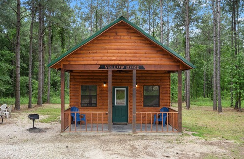 The Cabins at Holly Creek are nestled on 20 quiet acres on the outskirts of Broken Bow OK. Yellow Rose is a 2 bedroom cabin with loft that sleeps 8 comfortably. The cabin is equipped with all you need to make your stay complete. A fire pit and grill are located just outside the cabin so you can enjoy burgers and smores! Relax and read a book or sit on the front porch and enjoy nature when you aren't out exploring!