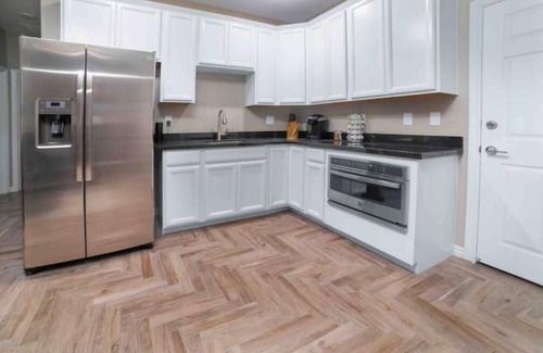Suite is equipped with private washer and dryer, iron and ironing board, as well as hangers, luggage rack, hair dryer, toiletries, and towels are provided. Keurig with assorted coffee and tea. Full refrigerator with ice maker. Microwave/Convection oven. Electric hot water kettle. Drinking water filter system in the kitchen, Extra outlets for plugging in your devices, High speed internet and smart TV. And Amazon Alexa for music and question and inquiries. Toiletries and other amenities will be provided the first 30 days after which the guest will be responsible for replenishing for their own use. All bookings 30 days and longer will be required to sign a standard month by month lease.
