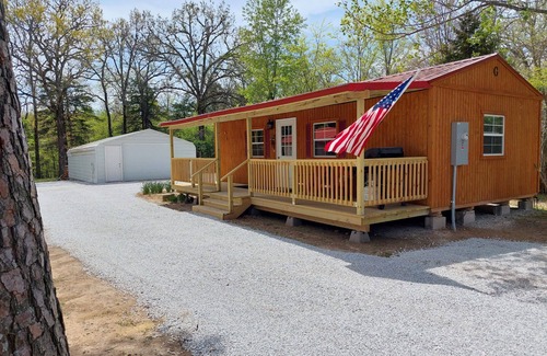 The family friendly Cedar Lodge is a brand new build with all new amenities/furnishings thorough. Rustic two bedroom one bath cedar cabin on Bullshoals Lake. This cabin is for people who love the outdoors and to be emerged in the pristine beauty of our surrounding nature. We have a fire-pit adjacent to the cabin for your use as well. Cedar Lodge sits on around 2 acres and you also have access to explore the grounds surrounding the lake which is bordered around our 2 acre property lines.