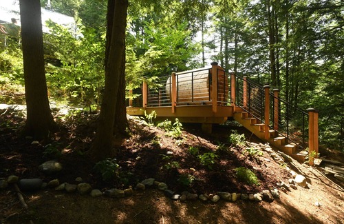 This one of a kind property, formerly a Historic Grist mill (with ruins still on the property to explore) is surrounded on 3 sides by the Jay Branch River, a crystal clear mountain stream that runs down from Jay peak. The property is filled with Cedar and Maple and the sound of the River permeates through the trees. With multiple swimming holes and a 20 foot waterfall just steps from the deck there’s not another VRBO like this in the state of Vermont.