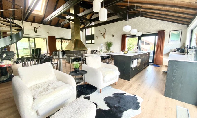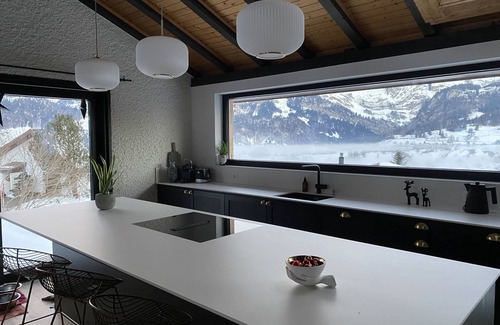 Just over an hour from Zurich, a beautiful recently renovated single house chalet, situated on the piste next to a blue run lowing you to ski in and out. Large open plan living space with fire and garden, 4 bedrooms, two bathrooms. Fantastic location, stunning views, walk-able distance to a mountain lake where you can swim. 5 mins walk to horse riding , and 5 mins walk to some fabulous restaurants. Unbeatable views with holiday charm. If you fancy exploring another country we are only 40 minutes from Lichtenstein and Austria and one hour from Germany, this is the perfect place to explore the region - if you can tear yourself away! Sleeps 10 in 4 bedrooms, with fully fitted kitchen and two bathrooms. Amazing location for both winter ski and summer walks.