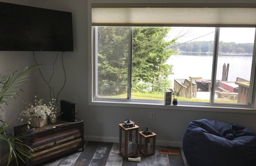 On the Lake, newly renovated home & large 2-tiered deck w/fireplace 6 person table. All sports public access lake, dock provided, kayaks (2) & paddle board. Good fishing! Excellent ice-fishing! Peaceful surrounding.