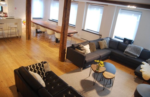 Loft in historic house very close to the historical centre of Ghent, 5 min walk to Vrijdagsmarkt, many restaurants, shops and bars nearby. Quite area with museums, sightseeing, nice shops and bars. Stylish, warm and comfortable. Plenty of natural day light. Fully equipped (heating, well-equipped kitchen, washer/dryer). 4 bedrooms, 2 bathrooms and 3 toilets. Free on site parking (9m long garage, suitable for two medium-sized cars parked the one after the other, or 1 long car).