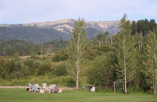 The Rockin' M Ranch consists of seven deluxe cabins, the main house, an onsite horseback riding stable, and fly fishing guide service . This property for rent is the loft cabin. The loft cabin has beautiful log construction with a rustic western appearance, and many modern conveniences, including full kitchens (stocked with dishes and basic cooking utensils), gas fireplace, air conditioning, direct T.V., covered decks, gas grills, and onsite wifi. On the premises there are two centrally located hot tubs. Located among the cabins are a horseshoe and fire pit for the evening hours. Excellent trout fishing is located onsite along with 400 acres of wadable fishing bordering the ranch on the Salt River. The Salt River location creates an atmosphere like no other vacation rental property in the area. The Rockin' M is not just a place to stay but a genuine western Wyoming experience!