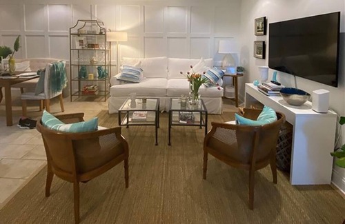 Set in a beautifully landscaped property this condo is a 2 bed - 2 bath tropical retreat which comfortably sleeps 4-6 adults. It's great for couples who want more space, or families with grown children. Stepping into the living room meticulously decorated with white paneling, beautiful furnishings and nature paintings you'll feel immediately at home. An antique desk provides space to work, and a pull out couch extra space for guests. With a large wifi enabled television and a dining table for six evening entertaining options are abundant.