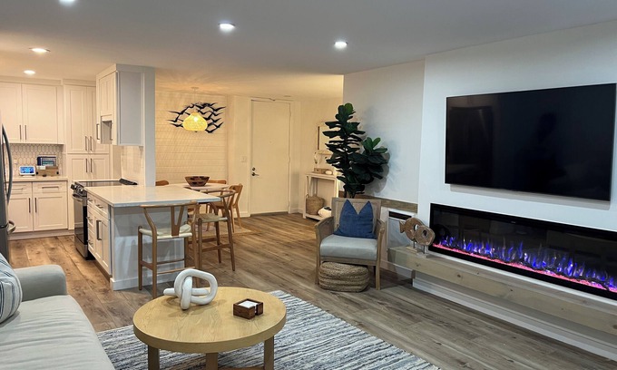 Beautiful Rancho Palos Verdes hilltop condominium complex. A perfect home away from home for an extended stay (30-day minimum stay required). Enjoy the gorgeous coastal weather from this 2 bedroom/2 bath, fully renovated garden condo. Easy access to awesome hiking and biking trails. Less than 2 miles from the world-famous Abalone Cove Shoreline Park. This unit is on the first floor with a beautiful garden view. Fully furnished with comfort in mind. Inviting cozy living room with electric fireplace and comfortable sectional sofa. Kitchen is equipped with all the amenities needed for cooking. Bathrooms are equipped with walk in showers. Master bedroom has a king bed, a walk- in closet, and built- in dresser. Second bedroom can be set up as 2 single beds or beds can be arranged to form a king size bed. Smart tv's in each bedroom and in living room. The condo comfortably sleeps 4. Location of this unit is close to resort style community pool, jacuzzi and traditional sauna. Breathtaking panoramic ocean views from various locations in the complex. Quiet gated community with underground garage parking. Elevator from parking garage to condo level. There is also an above ground parking space, total 2 spaces reserved parking. Community laundry facilities located close to this unit. You will enjoy the peace and quiet of this beautiful complex, as well as the easy access to nearby attractions and dining.
