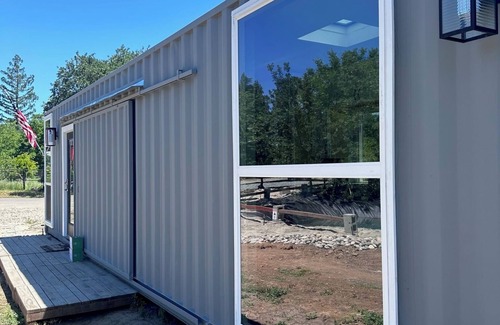 Unwind at this lovely container home that is located in the beautiful area of Morada in Stockton, California. Located close to Highway 99, the one bedroom home is gated and surrounded by a beautiful pond, and sandy beach area with a fire pit. The living room is equipped with a sofa bed and there is a large bathroom. You'll find all the essentials you need, including AC, WiFi, and heating. With such awesome views and amenities, you're sure to make fantastic memories with a stay at our place.