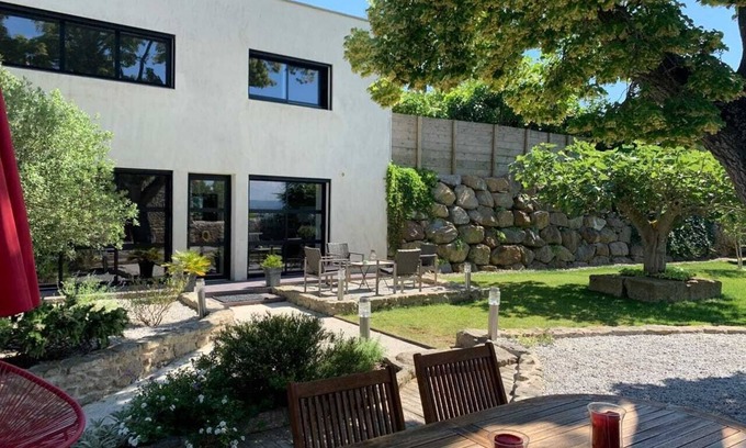 Contemporary house ideally located (quick access: airport, highway, town center, all shops, walks, Canal du Midi, Medieval city)