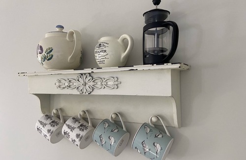 There is a mini kitchen which has sink, small fridge, kettle, toaster, 2-ring plug-in hob and a combi oven (microwave/grill/conventional).