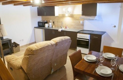 Cottage No 1 is a delightful self catering cottage over two floors with a lovely wooden staircase and tiled floor. It has a kitchen area, a dining area and a cosy snug where you can watch TV in front of a wood burner - but only in winter of course! Most of the time the living area is nice and cool and unaffected by the hot temperatures outside.