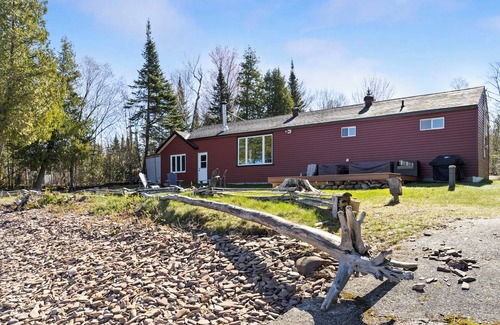 This Four Seasons 1400 sq ft cottage faces Lake Superior with over 110ft of lakefront, private boat launch and outdoor fire pit.