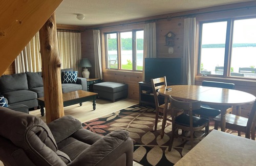 - Incredible lakefront house with cottages, dock, fire pit, decks, & amazing views