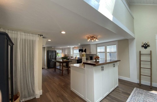 Are you looking for a beautifully renovated Klinger Lake cottage which retains all the charm but updated with all modern appliances and amenities? Our cottage offers all brand new smart appliances and carefully curated furnishings and decorations. You'll appreciate the antique fixtures and custom walnut woodwork that accentuate our modern take on lake living. Want to just relax and enjoy the outdoors? Our spacious deck offers more than enough space for any activity. The nearby marina offers power watercraft for rent and is steps away from your front door. One door down is the community pier where you can dock your boat for the day. Or simply walk from the creek to the lake (a mere 100 ft) for a swim or kayak which we have 2 available for you to use. Looking to cook a delicious meal? Our kitchen offers all brand new Samsung, Whirlpool, and Bosch appliances. Upstairs you can relax in our flex room and enjoy streaming live entertainment directly from your preferred account or direct from your smart device. Simply connect to our hi-speed wifi and share to our smart TV. Looking to cool off from the summer heat? Our deluxe heating and cooling units are individually controlled in each room, enabling you to reach optimal comfort. Or if you are just looking to enjoy more natural entertainment, step out on the deck for a beautiful sunset in the evening, which happens to be our favorite activity.
