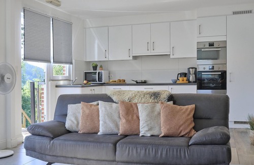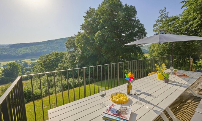 Located on a mountain, this beautiful country house has stunning views over the valley. You can easily see the forests and meadows around you. The view is truly breathtaking. From the living room, you look over the beautiful garden. On the balcony you can enjoy the morning sunshine the nature around you. You might even spot a deer. During the warm summer evenings, you can have a cosy barbecue with the group. The house is very comfortably furnished