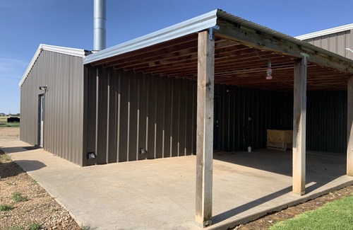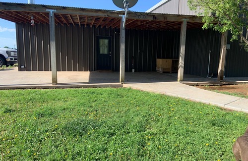 Our country shop home has a full kitchen and family room all in one. The family room has a recliner chair, recliner sofa and an regular sofa. There is a full shower bathroom. There also are two separate bedrooms. One with a king size bed and the other a queen size bed. We are out in the country with lots of parking space. Also, we are pet friendly. Our laboradore retrievers Jazz & Kash will probably be around to great you while you are here. Pretty sunrises & sunsets in the Texas panhandle. Also I’m sure you will hear our goats, chickens & ducks when you are outside for the total country effect.