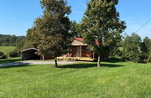 Gorgeous country views and less than two miles from downtown. Escape from stress to this cozy cabin on 3.1 acres, with your own private walking trail. Peaceful setting with fruit trees, wild mushrooms and wild blackberries for you to pick while in season. Wake up to deer just outside your door. There is a fire pit and charcoal grill in the back yard.
