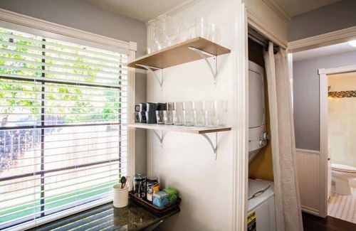Open, warm, sunny and inviting, the living/dining area decor features prints from Alphonse Mucha, a prolific artist in the late 1800’s and early 1900’s, when Santa Rosa was first established. Equipped with all the amenities you'll need for a fun and comfortable stay, including a big screen Roku TV in the living area for a night of Netflix, amazon prime or Hulu. Two darling bedrooms with pillow top mattresses, comfy quilted bedding and soft lighting. The kitchen is compact, but has everything you'll need for preparing delightful meals, and enjoying the outdoor patio area complete with a BBQ, loungers and a patio firepit table ~~ Perfect for relaxing with a glass of wine and a book.