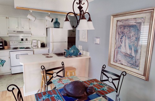 COME ON enjoy the sun and tranquility of the condo. Make this your best vacation yet. Ancient oak trees adorn this freshly remodeled condo, ..New beds, everything's new. Two bedroom, one bath, king bed in the master, 2 twin beds in the 2nd room. Condo sleeps 4.