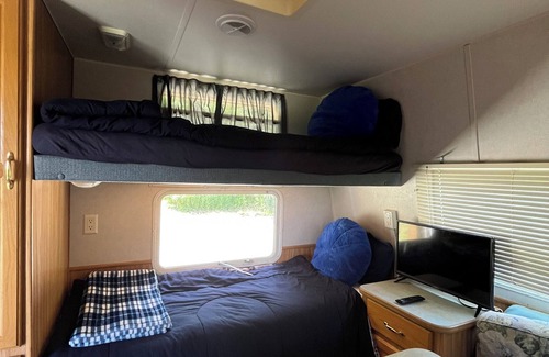 With hot water, ac&heat, full kitchen (stove & microwave), 1 queen bed and 2 twin beds, this RV has everything one needs for a perfect stay away from home!