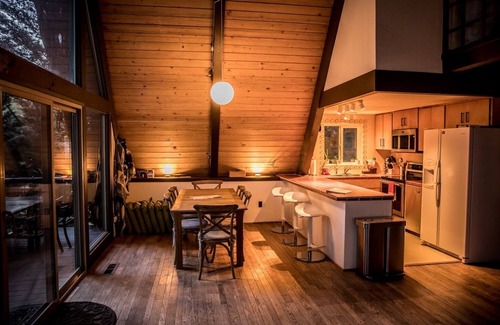 Welcome to the Beautiful, Cozy, Riverfront A-Frame Cabin+Hot Tub, an idyllic setting for your intimate wedding or elopement. Nestled along the tranquil banks of the Cowlitz River in Packwood, Washington, this stunning mid-century modern A-frame cabin offers a romantic ambiance with breathtaking natural scenery as a backdrop for your special day. With accommodating space for up to 11 guests, you and your loved ones can fully embrace the experience of celebrating love in such a picturesque location.