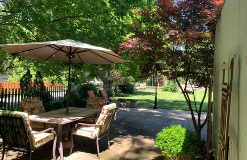 The Moon City Art Pad & Patio is a Craftsman style bungalow built around 1917 and we have owned it since 2000. While helping develop the Commercial Street Historic District since 1994, it has been the perfect place to live! Now, we have loved updating it to make it a place that guests and their pets will love. Artists with connections to Springfield are showcased, their original works line the walls. The patio and yard are perfect places to watch birds, relax and enjoy throughout the day.