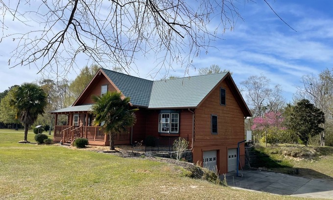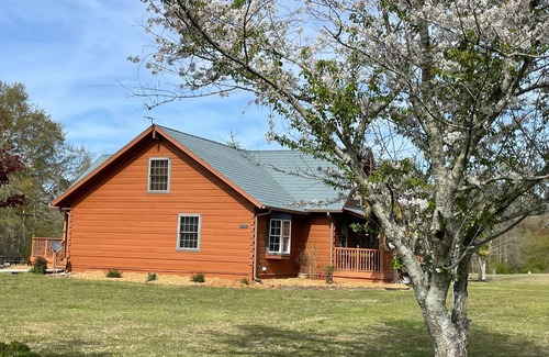 Fawn Meadow Lodge is situated well off of the road on 4 private acres where you can enjoy beautiful views of the Contentnea Creek and local wildlife from the large lower deck or the cozy upper screened porch. Adjacent to a wildlife rehabilitation refuge for fawns, you are very likely to see deer as well as squirrels, rabbits, otters, eagles, etc. The lower deck is furnished for relaxation and includes a porch swing, charcoal grill and a propane gas fire pit perfect for making s'mores. Launch your small creek boat or kayak at the gravel launch area or nearby at the small public launch. Enjoy great fishing, wildlife viewing, walking or shooting hoops on the concrete pad. The lodge is convenient to world-class BBQ including the Skylight Inn and Bum's BBQ or multiple other dine in or fast food restaurants serving a wide variety of foods. Conveniently located between Greenville and Kinston, this is perfect for attending local ECU football games (30 min.), graduations, or for access to ECU Health Medical Center (25 min.) and UNC Lenoir Hospital (17 min.) . Two stop signs away from the new Greenville bypass, local trips to and from Greenville are quick and easy. This beautiful log cabin has vaulted ceilings and a balcony common area with lots of exposed beams for that warm, cozy feeling that only a log cabin has. The kitchen is well furnished with all appliances and includes a dishwasher, microwave, toaster and dual-service coffee maker for coffee by the pot or the cup. Basic condiments and spices are provided. Bring your groceries or shop for them a mere 10 minutes away in Ayden. There is table seating for 10 indoors or have a picnic at the picnic table in the beautiful backyard. Fawn Meadow Lodge sleeps 8 with linens and towels ready for your arrival!