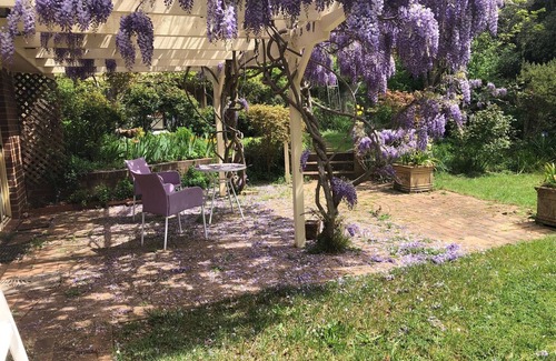 The newly opened Daffodil Suite is a fully self-contained one bedroom flat with fully-equipped kitchen, bathroom and laundry. The spacious lounge room contains a double sofa bed, dining table, desk and smart TV. The beautiful bedroom opens out onto a private courtyard garden with daffodils, tulips, roses and lavender.
