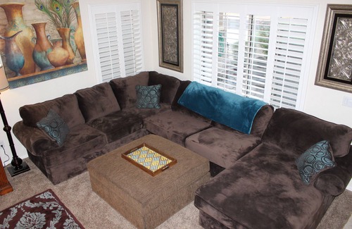 Our home is newly remodeled and feels brand new; it boasts beautiful furniture throughout with two super sectional couches and a master bedroom ensuite to relax in for hours. The fully equipped kitchen is one for entertaining which is connected to the family room, and has a nook with a large dining table that looks onto the pool. You will have the conveniences of a kitchen equipped with a double stainless steel refrigerator, microwave, stove, coffee maker, toaster, and dishwasher. Enjoy two 50” LED flat screens in the family and master bed which makes it the perfect getaway to cozy up for a great movie or the big game. The master has a large den/retreat that has a queen size bed and desk area. Play cards in the “Tommy Bahama Room” or sit and electrically recline in the fantastic western themed family room.