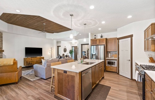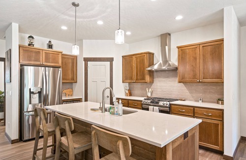 Just two blocks from the Pend Oreille River, this spacious three-bedroom house plus bonus room is going to give your family and friends the vacation memories you deserve! Inside, you'll be swept away by the living room's high, coffered ceilings and its attractive gas fireplace, floors, and furniture. After a day on the river, you can spread out to watch your favorite movies and shows on the large flatscreen TV. The full kitchen is equipped with everything the family chef will need to prepare fantastic meals for everyone to enjoy. Use the center prep island, stainless steel appliances, and cabinet storage to put on a showstopper then serve up your dinner guests at the handsome dining table while the kids chatter away from the breakfast bar stools. After dinner, the dishwasher will quietly take care of all the cleanup while you take a few glasses of wine out to the private deck furnished with a gas grill and lots of Adirondack seating. If you don't feel like cooking, you can always enjoy waterfront dining at the restaurant at the marina.
