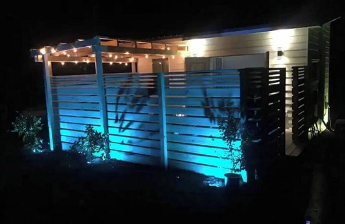 Amenities with total luxury in mind including: indirect led lighting in the crown molding that is adjustable to 16 million different colors, Pergo scratch resistant pet friendly flooring, top of the line HVAC that is whisper quiet, superfast 400 MB Wifi internet, aromatherapy diffuser with 6 types of oils including peppermint and lavender, heated flooring in the 45 sq ft bathroom that has a waterfall shower head and a tankless water heater providing instant hot water, fully functional kitchen, queen bed on a cool foam mattress, 50" 4K TV (Amazon Prime, Netflix, HBO) with Alexa 3D sound system, and a large private fenced in deck that includes a propane firepit, grill, and dining area.