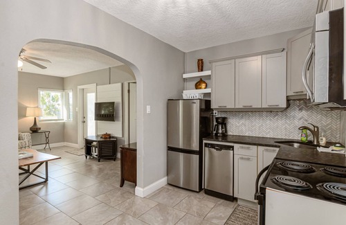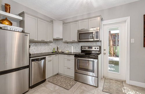All 4 units in this Boutique complex have been completely renovated within the last 2 years. Beautiful custom kitchens with granite or teak wood countertops, bathrooms with walk-in showers and unique tile finishes, comfortable furnishings and tasteful art round out the space. Multiple windows and quiet mini split air conditioning and heating systems. Beautiful space to call your home for your vacation. Each until also has a private courtyard and the duplex building also has a very large shared front porch. Laundry on site for your convenience. NEED MORE SPACE? RENT THE WHOLE PROPERTY! LINKS BELOW.