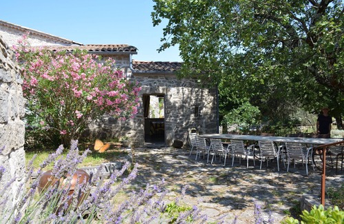 In protected natural area, nestled in the heart of three hectares of scrubland and oak forest, an ideal place to relax. Southern Ardèche typical mas of limestone was divided into two completely independent parties. The owners live year round in the east wing. The west wing and the first floor, 200 m2 Are reserved lodging. At your disposal: the ground floor, large terrace, open kitchen, dining room, corridor and bathroom / WC; upstairs, five bedrooms, two bathrooms, a living room with TV, a separate toilet. Many private outdoor areas, including the pool 5 m X 12 m with a large terrace ... hiking paths and mountain biking are just outside the property. And the charming and dynamic village Vans is only 3 km, with its shops, its market, its cinema, its tennis courts ... Your hosts, beekeepers will be happy to show you around their honey house, located on the property (by appointment), and explain the honey trade secrets.