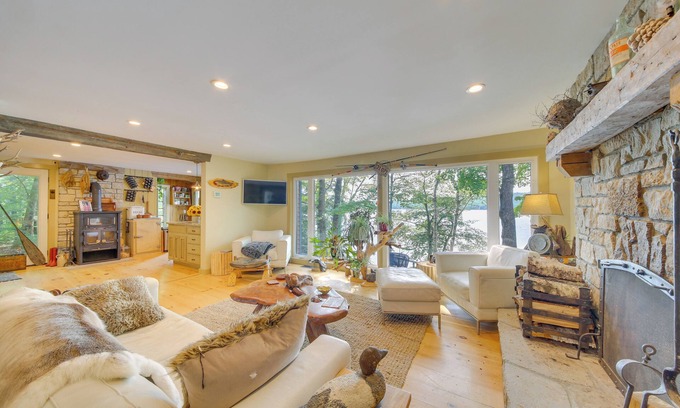Plan your next family vacation, wilderness retreat, or skier's getaway at this warm and welcoming 3-bedroom, 2.5-bath Embden cabin. Embark on long, blissful days paddling on the lake and casting off the private dock, or in the winter, curl up around the fire, and take advantage of the fully equipped game room. Besides the gorgeous waterfront location, this vacation rental also offers the sought-after perk of a pet-friendly policy, so you can feel free to bring your favorite furry friend along!