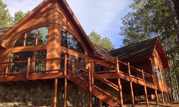 Welcome to our paradise in the Northwoods! We are located on a secluded lake peninsula. Enjoy a morning cup of coffee on our beautiful deck overlooking the clear waters of Spider Lake in Mercer, the premier lake in Northern Wisconsin. Walk down the stairs to your personal dock and take your boat out to fish, tube, ski or whatever your pleasure. Stroll our 657 feet of private lake frontage and enjoy an evening bonfire at the lake's edge. Summer or winter, our lake lodge offers you all the comforts of an upscale resort with the privacy you desire.