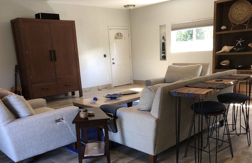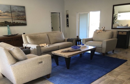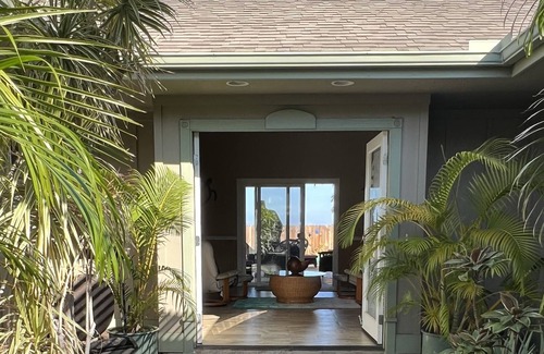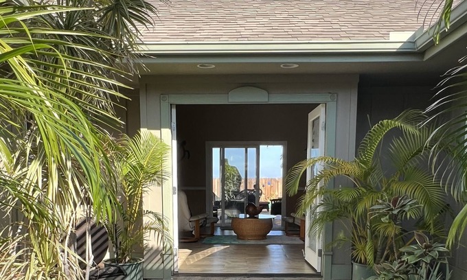 Our home is located in Beautiful Waikoloa Village, a small bedroom community with everything you need from shopping, dining and golf. Many of the best beaches on the island are 6.6 miles away. If you would like additional dining and shopping , visit the Kings’ Shops, Queens’ Market Place, or the Shops at Mauna Lani offering a wide variety of restaurants and stores. Waimea, is just 25 minutes northeast, and offers more dining and shopping, as well as horseback riding and live concert events. Our Hale is a 3000 square foot home that has been lovingly prepared to make every guest feel comfortable and relaxed. Inside our single level home we have lots of space for our guests to spread out and enjoy. Our home is also Handicap accessible, with no stairs. We have ramps for any area that has a slight elevation change. We have a large dedicated Media room equipped with state of the art Atmos surround sound system, and Marantz receiver. Comfortable reclining sofa and oversized reclining chairs. Each unit is equipped with USB ports to charge your devices. Everyone will enjoy the large open concept Chefs kitchen, that has been fully equipped. Featuring granite counter tops, fingerprint resistant stainless steel appliances, gas stove, double oven and lots of counter space. Next to the kitchen you will find a brand new LG full size washer and dryer with a large butlers pantry and built in Iron and ironing board. along side the kitchen enjoy our library lounging area, great for reading or just hanging out. The formal living room has plenty of space to hang out and watch the sunset while preparing your dinner. Inside you will find 2 master bedrooms and 2 baths. One Master is on suite and the second bath is right next to the secondary Master which is shared with the 3rd bedroom. Both have very cozy king size beds, and large 65" smart Tv's . The Master bedroom has a dedicated office space. Outside is our 3rd bedroom with a queen bed Tv and wardrobe for your items. This home offers peace and relaxation in a beautiful setting with gorgeous views of the ocean. Listen to the sounds from the outdoor water features while watching the sunrise or the sunset, After a long day at the beach or from your travels around the Island. Enjoy a BBQ on the main lanai, and end your day relaxing in the hot tub. With the awesome trade winds and a perfect 700 foot elevation we find that AC is not needed. Fans in every room provide perfect airflow. We look forward to your booking.