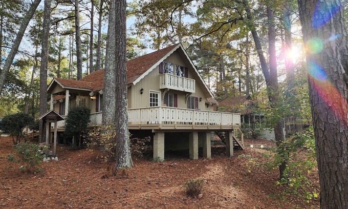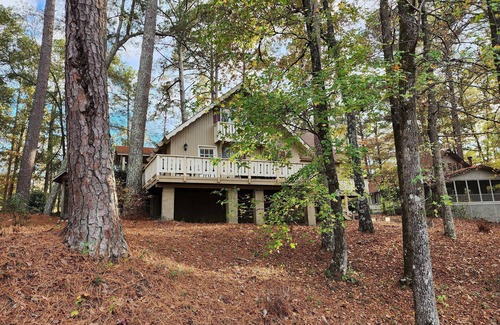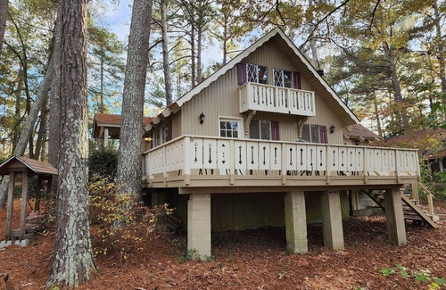 Relax in this spacious 4-bedroom, 3-bath chalet with lovely lake views and a large deck. Enjoy resort amenities like fishing, tennis, a seasonal pool, putt-putt, and a playground. Pet-friendly (fee applies). Just 3 miles (5 minutes) from Callaway Gardens (not located within). Perfect for families and friends to unwind. Everything you need in what we hope will be your home away from home! :) (No extra guests or parties allowed.)