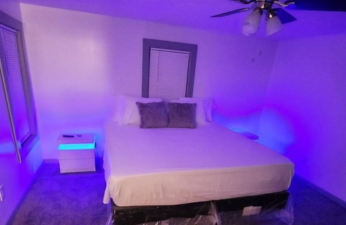 This property has several areas to sleep both upstairs as well as downstair with the main bathroom on the first floor. Perfect for large families or groups looking to stay together at one great price for the night. Fenced in backyard with firepit and Grill. Patio furniture and smart tvs in almost every room.